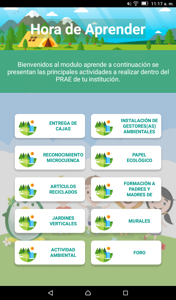 Aplicación móvil dirigida a niños y jovenes de las instituciones educativas del municipio de Pasto la cual permitirá concientizar y generar una cultura ambiental frente a aspectos de residuos sólidos y reciclaje.